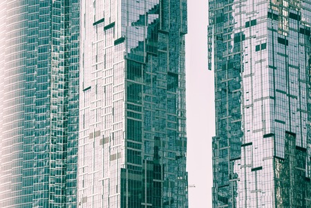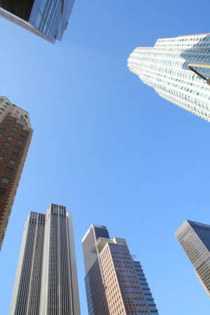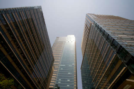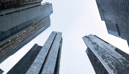 Impressive modern skyscrapers reaching for the sky in the business district of a major metropolis, bottom view