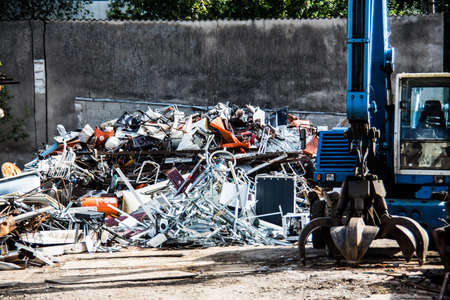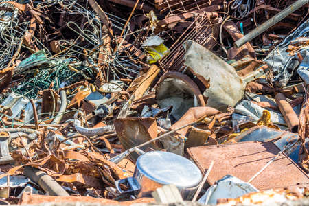 Detail of a huge mountain of mainly metal garbage and appliances in a junkyard