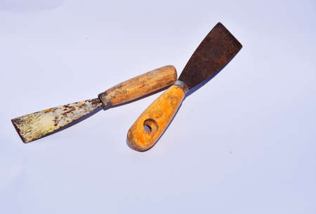 Metal scraper tool. Putty knife isolated white background