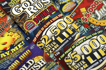 KYIV, UKRAINE - OCTOBER 22, 2025 Lottery tickets scratch cards for instant lottery play with typical colorful titles