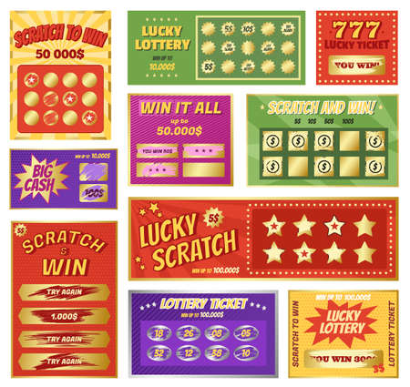 Scratch cards, instant lottery card, lucky jackpot winner tickets. Lotto and bingo game winning ticket, scratchcard games vector set. Gambling concept, coupons for prize or big cash win