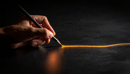 In the quiet darkness, an artist's hand guides a paintbrush, leaving a trail of pure, glowing light.