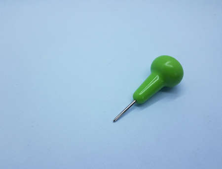 Close up of Green pin on white background