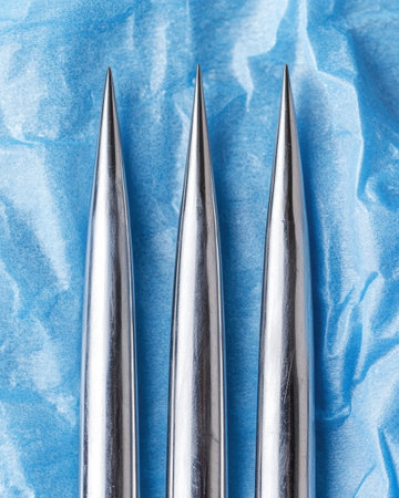 Polished stainless steel acupuncture instruments rest neatly on a crumpled white fabric, evoking calming ambiance suitable for holistic healing and integrative medic