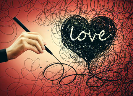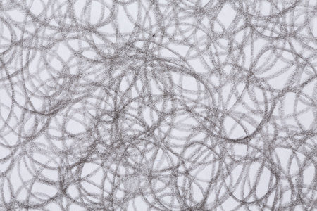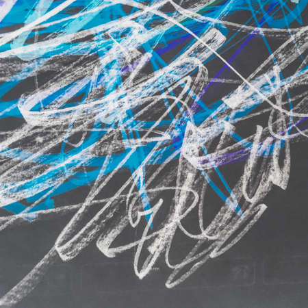 Abstract picture of scribble with pen over a piece of paper in close-up on a black background. Chaotic drawing. The daub in the notebook. Psychological method of stress relief. An