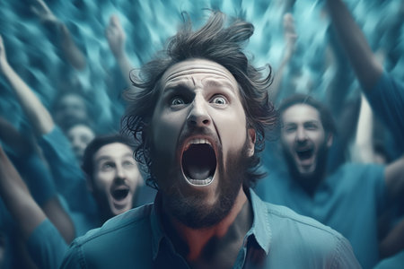 Man scream crowd scary. Danger screaming. Generate AI