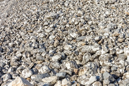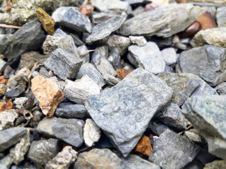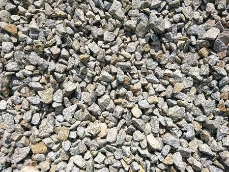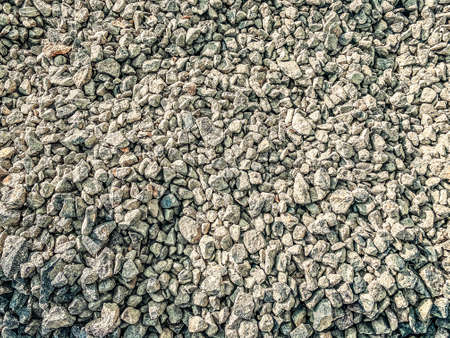 Building stones of grey on the road, close-up, small rocks or gravel used for construction of buildings