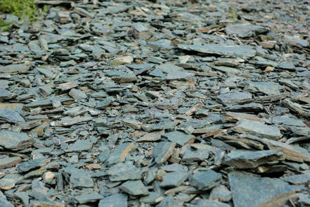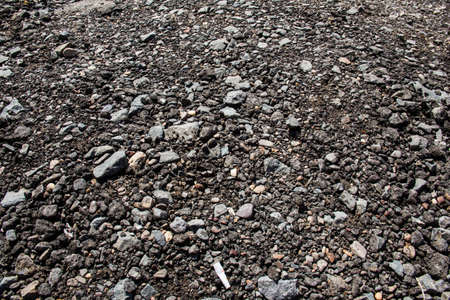 Repair of the road surface. A pile of stones made of old asphalt lies on the road. Textured abstract background. Close-up