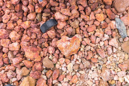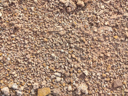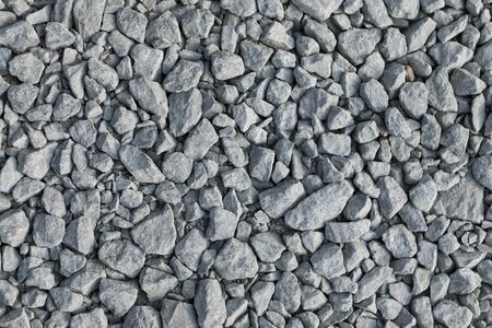 Crushed rock close up. Small rocks ground. Small stone construction material. Crushed stones building. Garden gravel background stone landscaping. Closeup Gravel road. Building material gravel texture