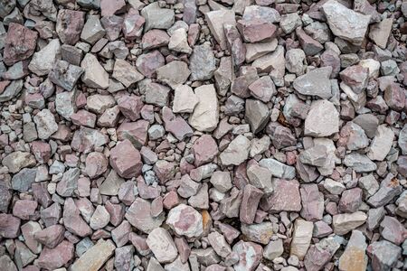 Rough stones, crushed stone, granite gravel close-up. The rough texture of the stone. Building material background. Texture