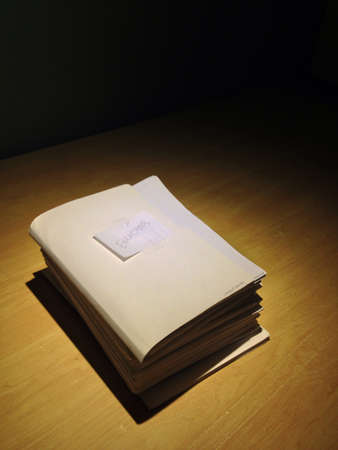 Screenwriter holds folder of documents labeled script. Development of plots for films and series concept