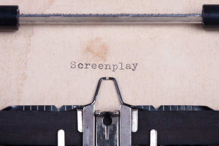 An imaginary script by an imaginary writer on a sheet of paper inserted into a vintage typewriter. Selective focus. Post-processed to look like an old photo.