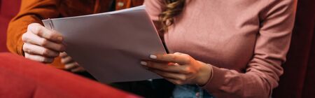 Sign displaying Cinema. Internet Concept theater where movies are shown for public entertainment Movie theater Office Stationery Paper Clipped Together Laying Flat On Table.