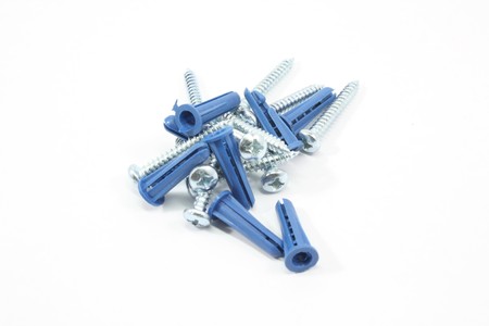 Screws and wall anchors isolated on white background.