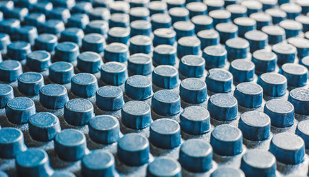 A vibrant abstract composition featuring blue screws and bolts against a light blue background, showcasing shadows and textures for a modern aesthetic.