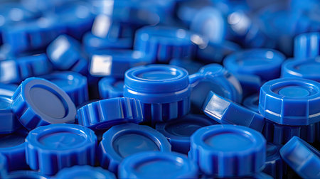 A vibrant blue plastic bottle cap rests on a soft blue background, showcasing a minimalist aesthetic. Perfect for themes around recycling, nature, and design.