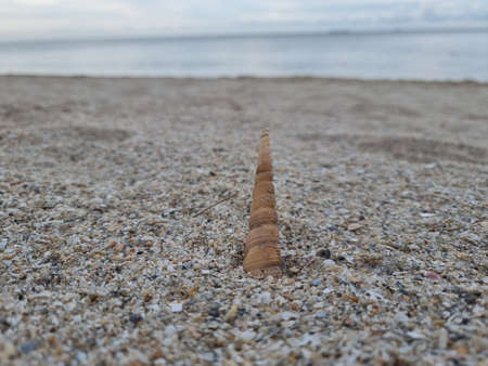 Seashell lies on the beach in the sand