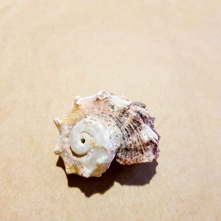 Seashell on a sand-colored craft paper background. Isolated
