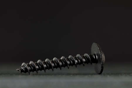 Close up of screw heads on a black background. Advertising photo. Selective focus