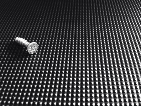 An isolated screw placed on a reflective surface with a dark background. Selective focusing