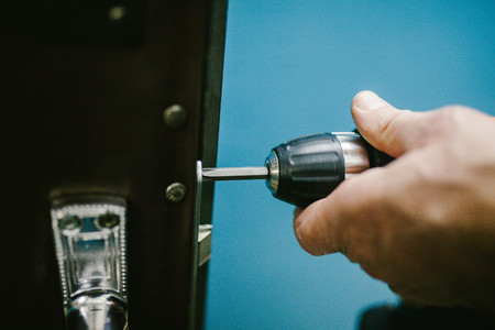 a man using a screwdriver in the door lock change