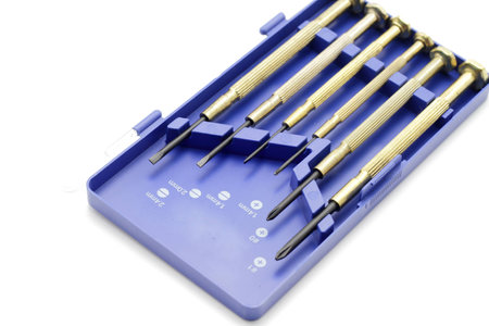 A selective focus shot of a new set of screwdrivers in a box for tools