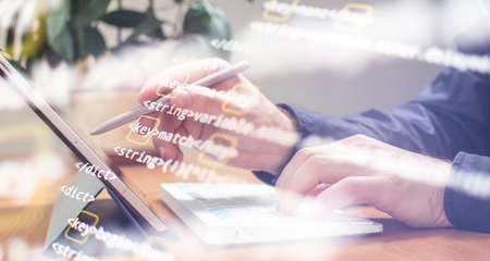 Innovative startup project. Website programming code. IT business.