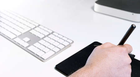 Close up of business man's hands working.