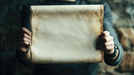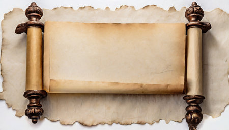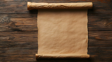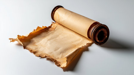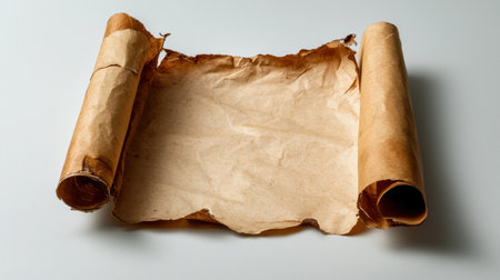 Empty old scroll showcasing weathered edges, perfect for vintage projects or historical themes. A versatile background for creative designs or presentations.