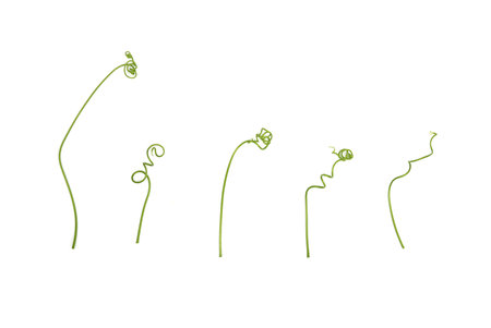 Plant vines green growing twisting zigzag, 3d illustration, horizontal, isolated, over white