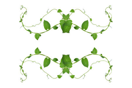 Floral Desaign. Twisted jungle vines liana plant with heart shaped green leaves isolated on white background, clipping path included.
