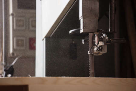 Band saw in carpentry workshop. Woodworking, wood products, work, employment