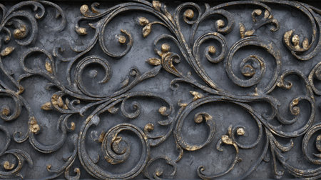 ornate swirls and patterns on vintage iron gate, created with generative ai