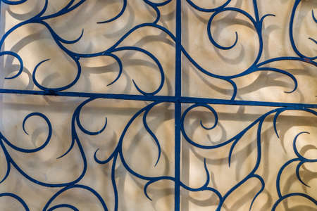 Decorative metal gate ornament. Antique iron door with classic ornaments.
