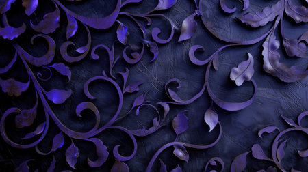 This stunning swirl and leaf design features deep purple and blue tones, perfect for artistic backgrounds and elegant decorative applications.