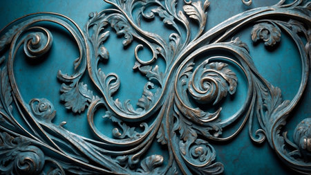 background of beautiful patina ornaments over blue wall