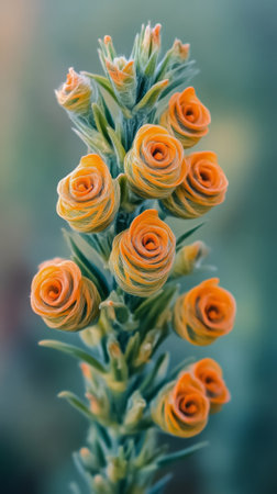 Close-up of orange spiral flower buds in vertical arrangement, vibrant nature concept