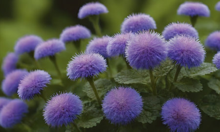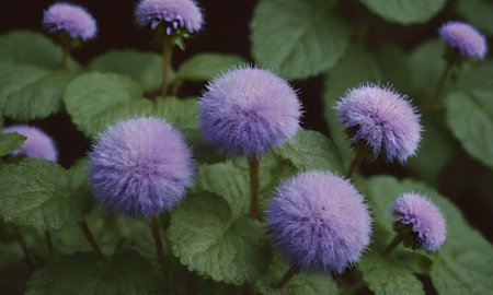 Close-up of an isolated purple inflorescence of globularia on an unfocused background