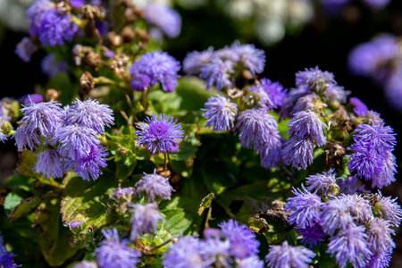Close up of blue thistle flowers in the garden. Shallow depth of field.