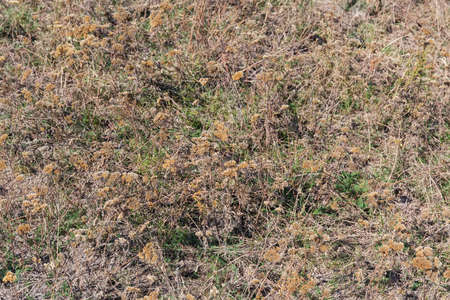 Section of a meadow covered with dry yarrow thickets and other various withered grass