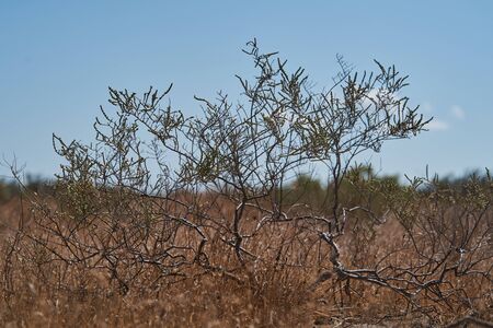 Savanna desert tree shrub, close-up. bush on nature park, outdoors