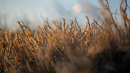 wild flowers on a sand, late autumn landscape, dry grass and plants