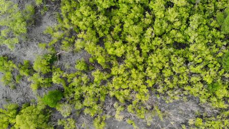 Aerial view of landscape pattern of trees growing on tidal salt flats.