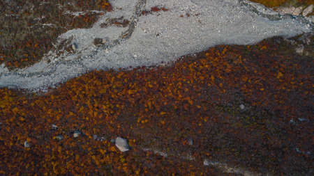 Wild River Winding in Autumn Foliage. Natural Patterns. Aerial Drone View.