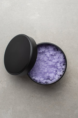 In a woman's hand is a jar with a Body Scrub made from natural ingredients. Handmade cosmetics. Home spa