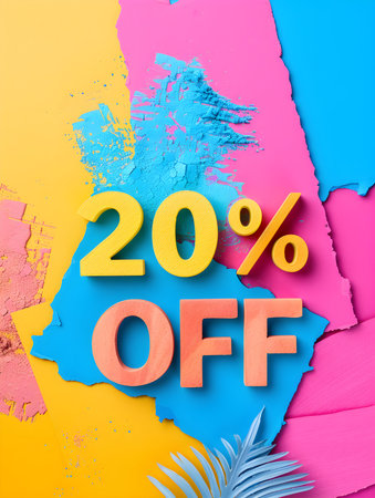 Multicolor '20% OFF' Promotional Sign on a Multicolor Background