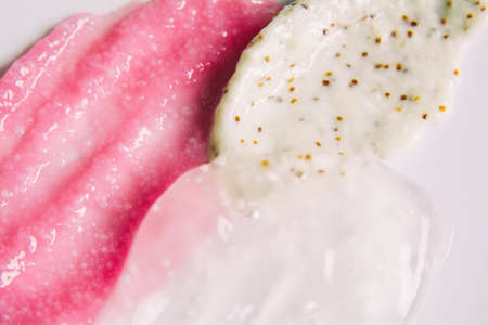 Multicolored cosmetic product sample, beauty background. Selfcare trend