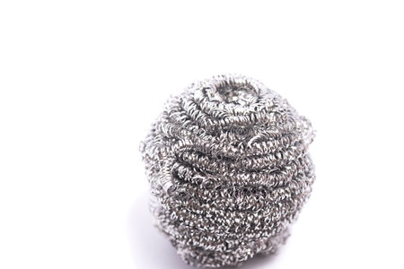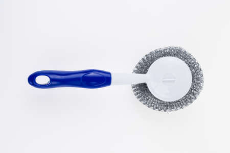 Metal brush for kitchen utensils, isolate on white. Kitchen scrubber for washing and cleaning dishes.