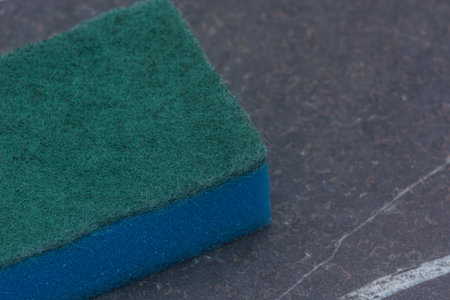 Cleaning Kitchen Dishwashing Sponge close up with copy space.