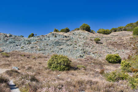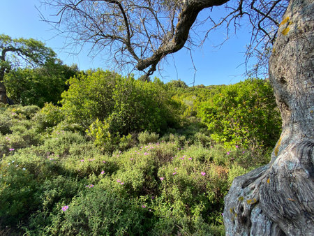 Landscape with shrubby Mediterranean vegetation in a type of macchia on the Greek island of Crete